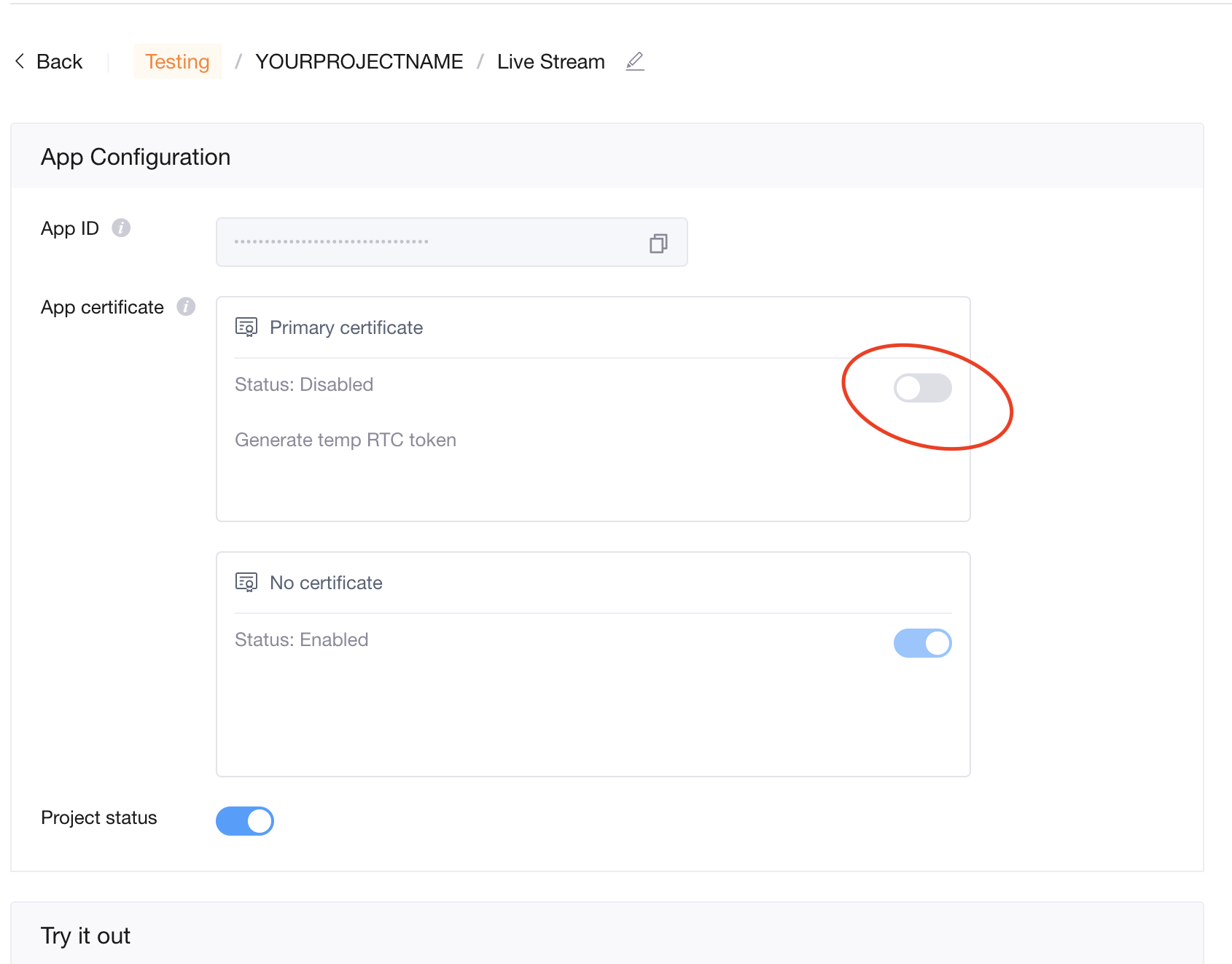 After creating a new project in your Agora dashboard panel, do not forget to do the above. If the first project you created does not work, create a second project and use the details of the second project you created. It will definitely work if you do everything right.