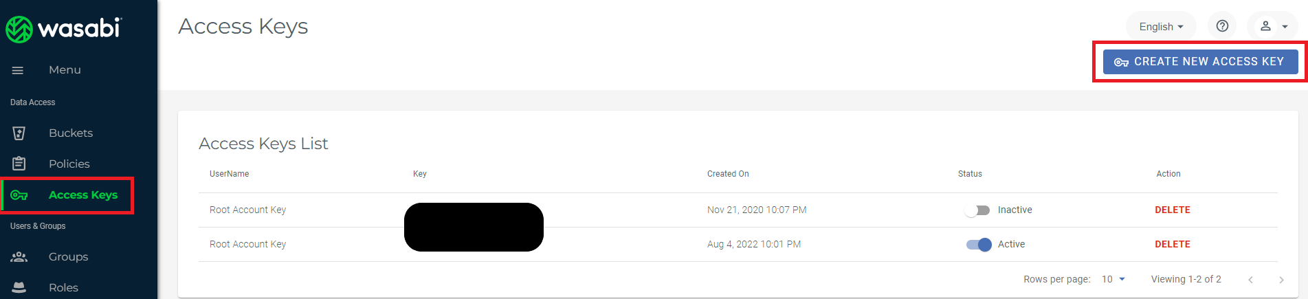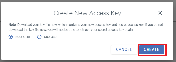 Step 5: Now when you are done creating and configuring your Wasabi Bucket, you will need to create Access Keys to be able to use your Wasabi Account.