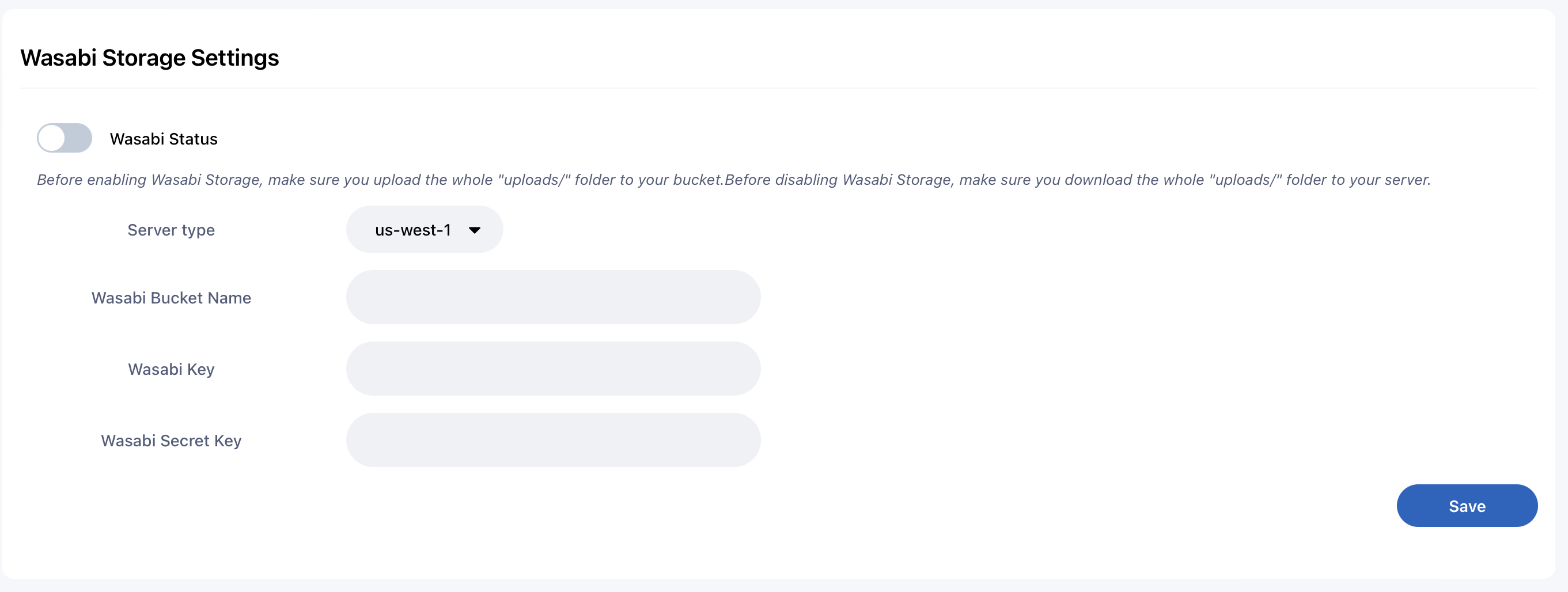 Storage Settings (Wasabi)
