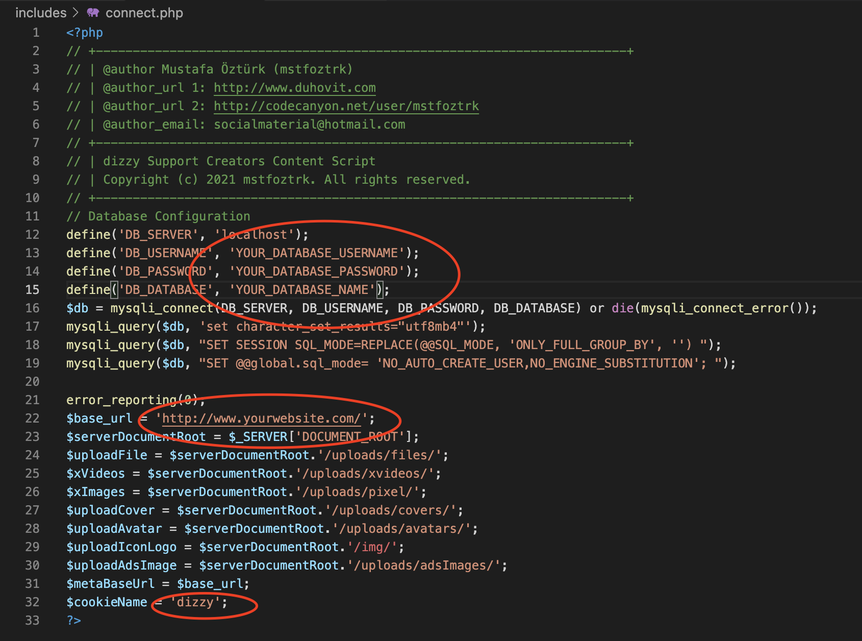 Please open connect.php in includes folder