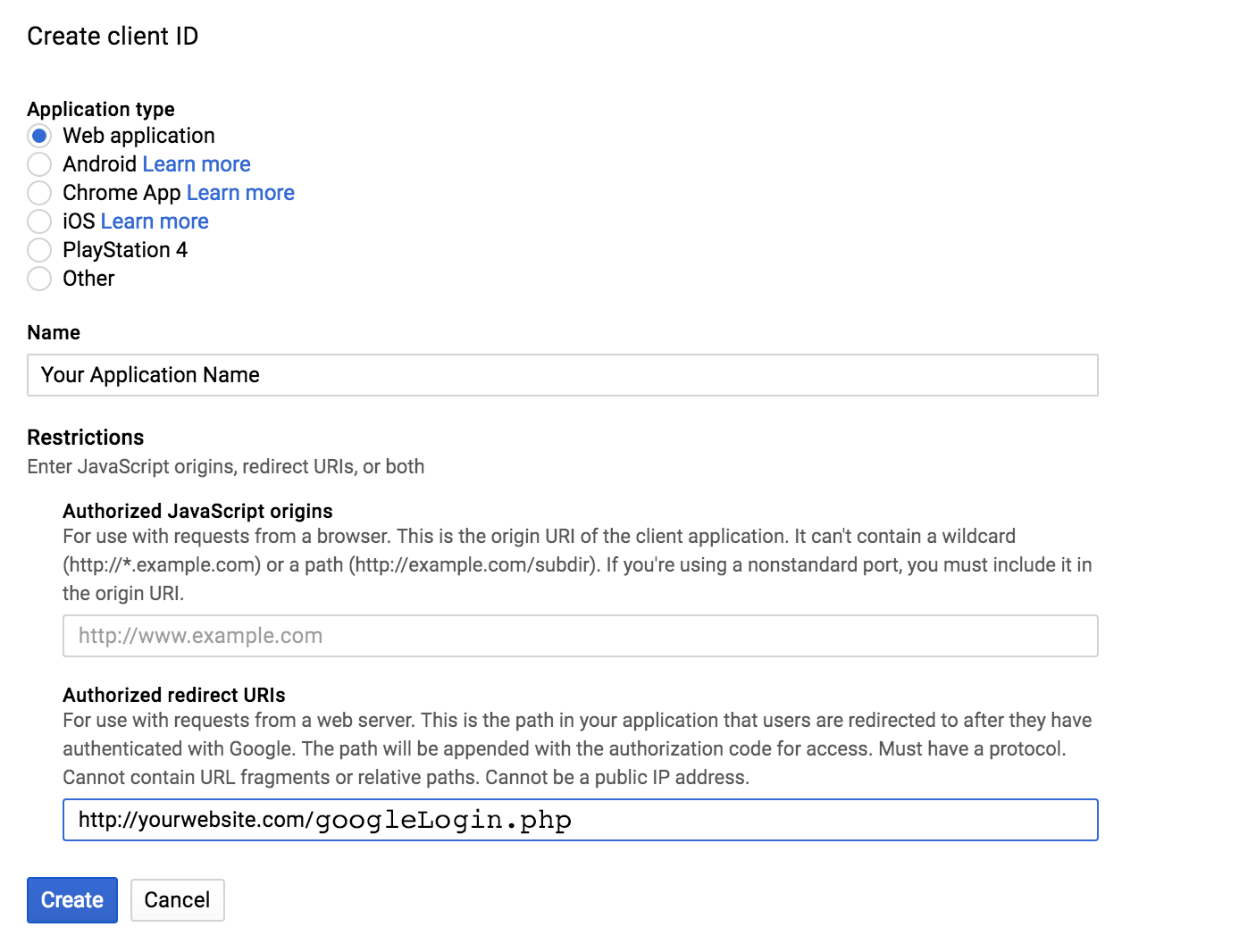 Google Redirect URL: https://www.yourwebsiteurl.com/googleLogin.php