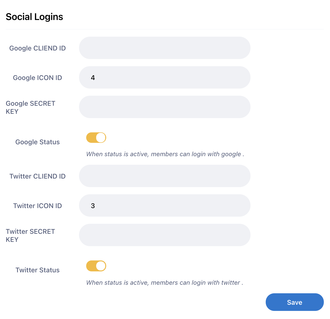 Social Logins (Edit Twitter and Google Login)